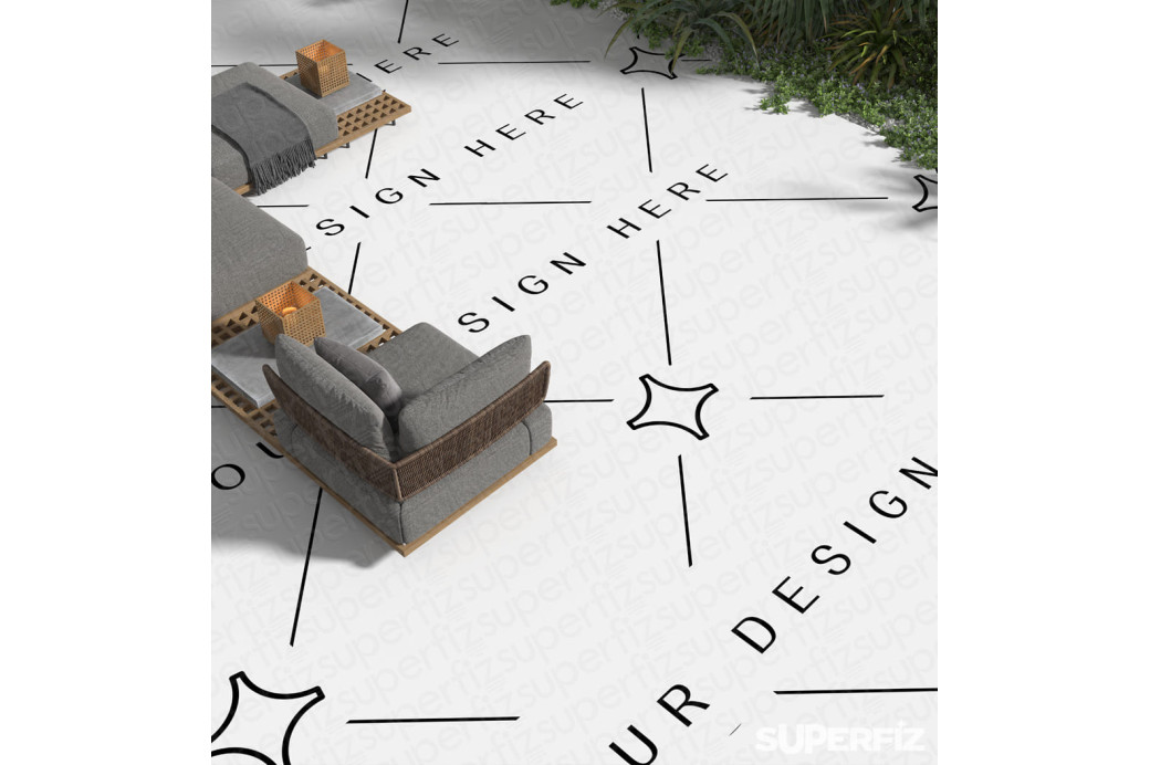 Show your surface designs in a refined outdoor patio scene with natural light and realistic perspective.