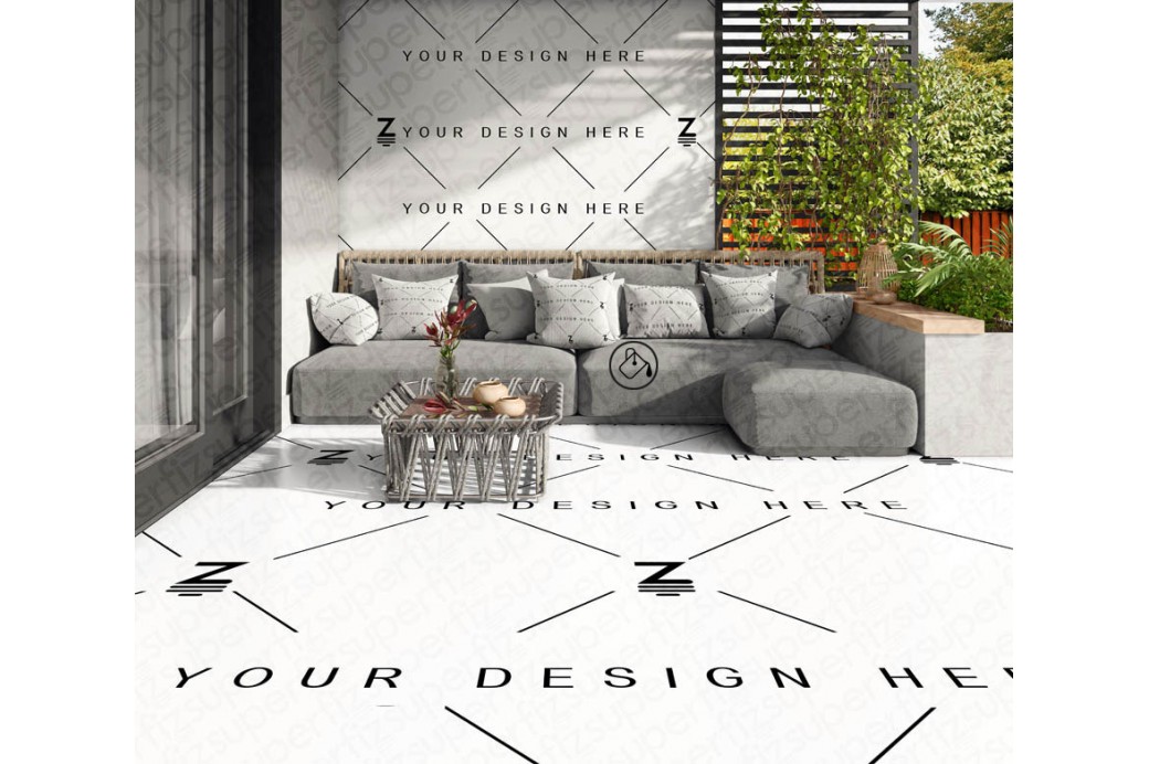 Mockup de Area Externa para mostrar el diseño de la superficie del suelo y pared con un resultado fotorrealista.