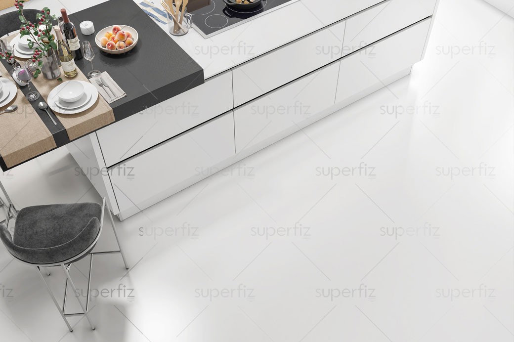 Mockup de Cocina para mostrar el diseño de la superficie del suelo con un resultado fotorrealista