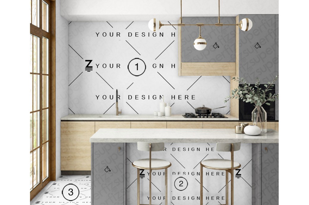 Mockup de Cocina para cambiar la superficie de la pared, suelo y isla SM116