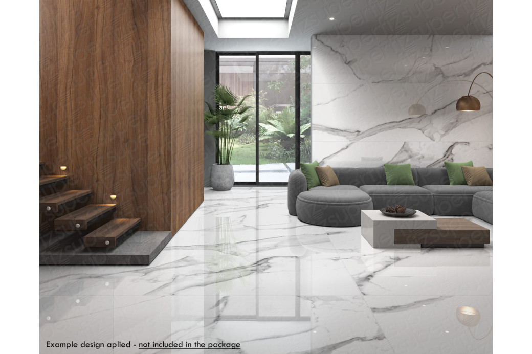 Este Mockup Premium de Sala Moderna é um arquivo PSD de alta qualidade desenvolvido para ajudar marcas, designers e fabricantes a apresentar materiais de piso e parede em um ambiente interno elegante e realista.