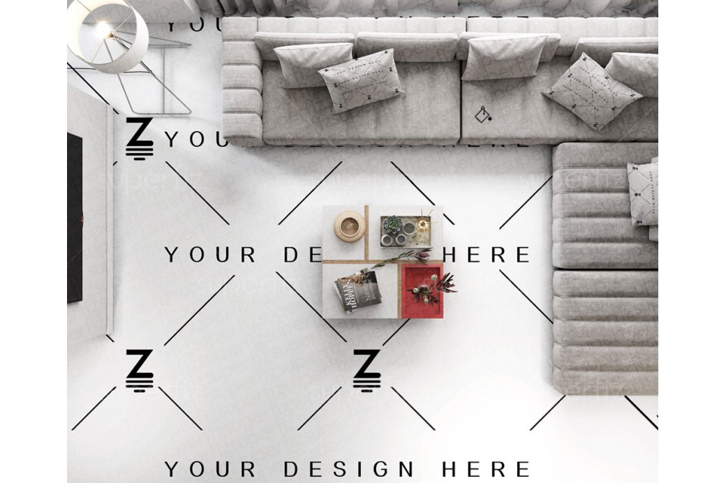 Mockup de Sala para mostrar o desenho da superfície do chão com um resultado fotorrealista