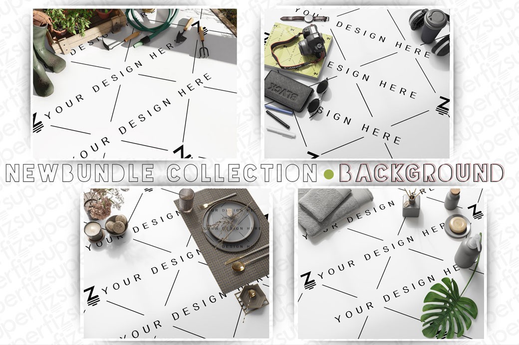 Bundle Mockup - Mini Cenas para mostrar o desenho da superfície do fundo com um resultado fotorealista.
