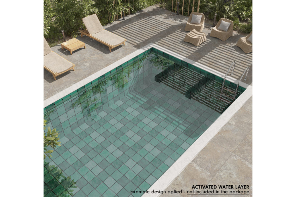 Apresente seus designs de revestimentos para piscina com este mockup fotorrealista no Photoshop (PSD editável). Seu acabamento hiper-realista permite mostrar com precisão como seus azulejos ou mosaicos ficarão em um ambiente real, ajudando você a comunicar sua proposta de forma clara, profissional e atrativa. Este arquivo foi desenvolvido especialmente para fabricantes, designers e empresas do setor de revestimentos que buscam impactar clientes e catálogos sem a necessidade de protótipos físicos caros.